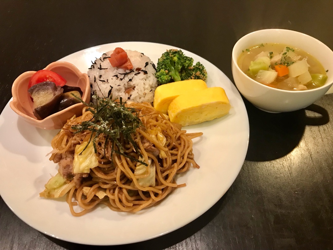 焼きそば単品だとどうしてもランチのイメージになっちゃうので、晩ごはんで焼きそばを出すときは簡単なおかずをつけています^^