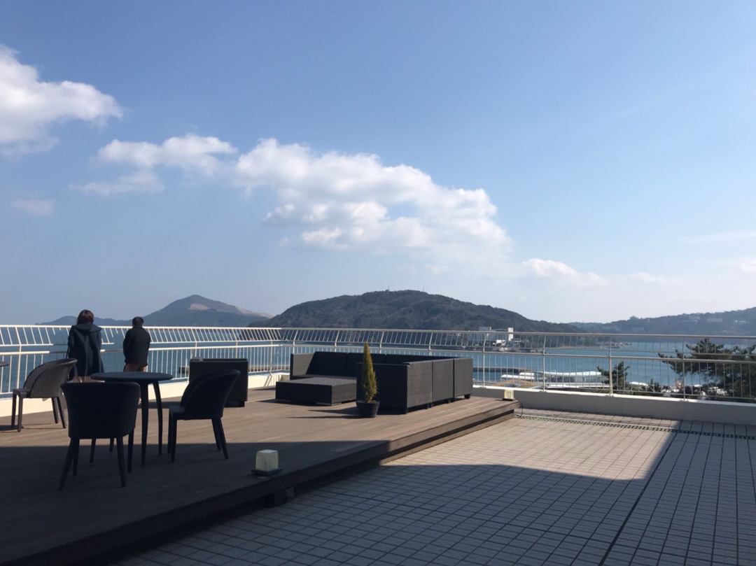 新鮮でコリッコリなお刺身ー!(≧▽≦) オサレテラスからは見晴らしもよろし