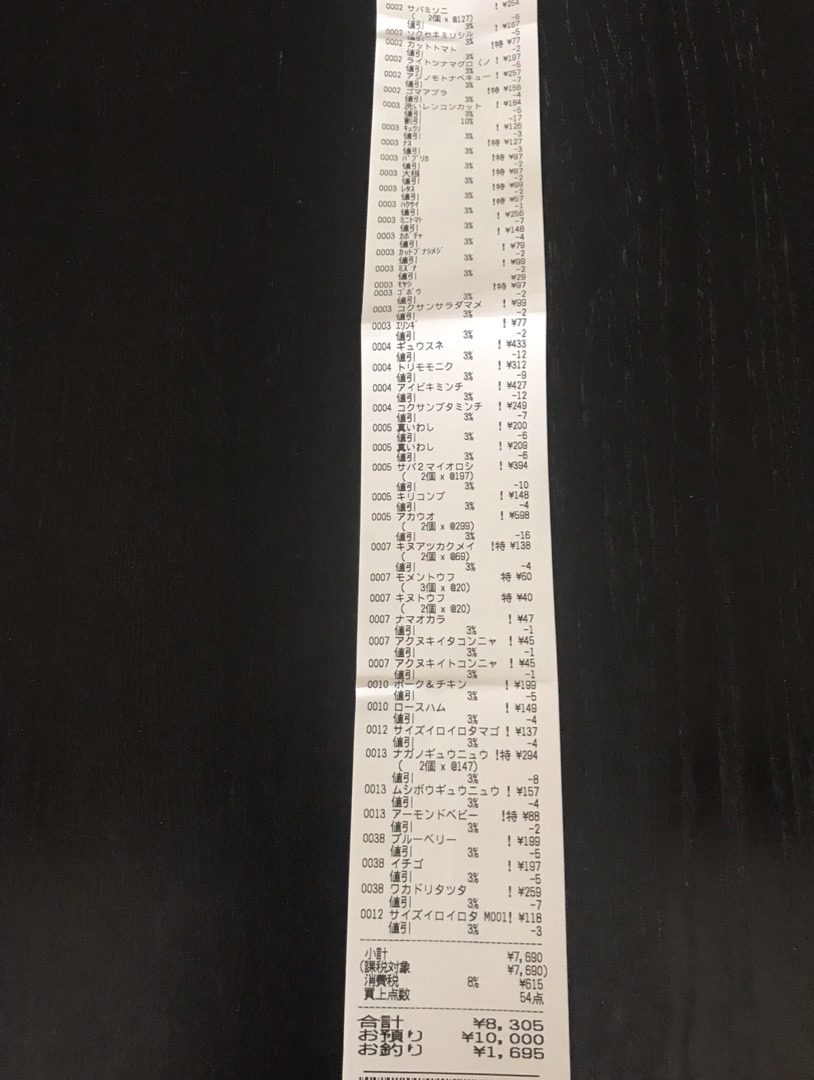 今週も平日に行ったので全品3%引きですよ!
