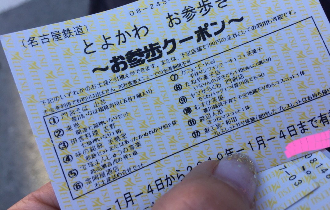 お値段倍近くにはなりますが、それでも普通に切符買うよりは(お土産などもついて)なので、この『とよかわお参歩切符』はオススメです^^