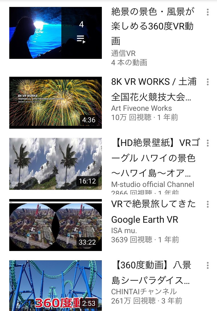 ほかにも世界の絶景やアトラクションなど、今はYou tubeにもいろいろVR動画が出ているんですね~