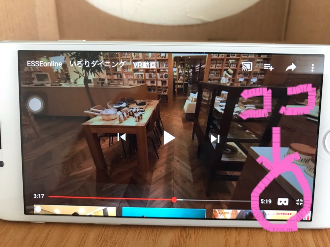 この画面にするには、右下のこのメガネマーク・・・ いや~100円のVRゴーグルでも全然楽しめますね!^^