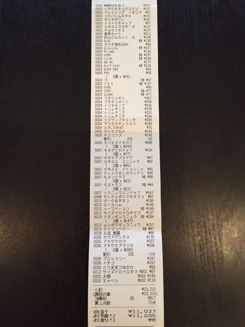 毎週平均して60点~70点以内の品数で8,000円台というのが我が家の平均のまとめ買いの金額です^^