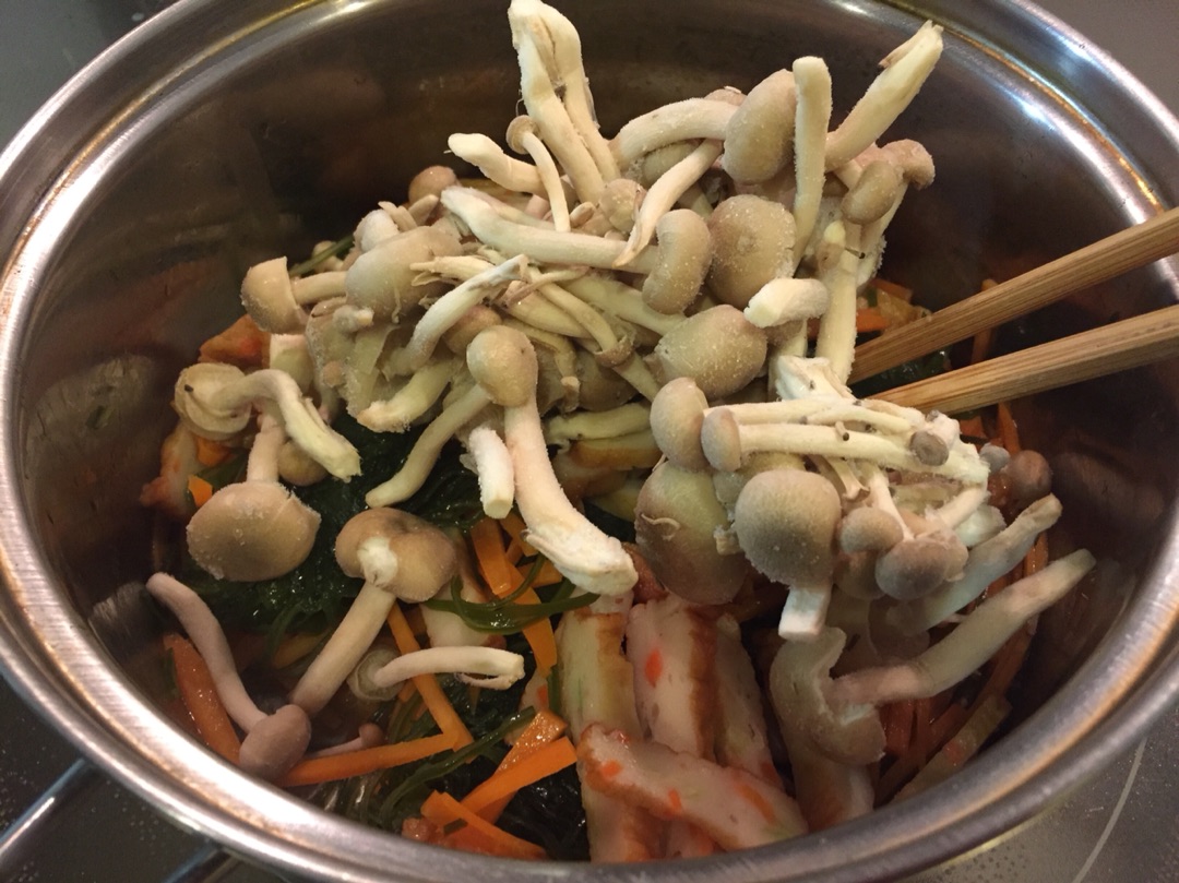 ついでにしめじも凍ったまま投入!