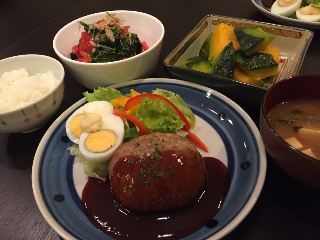 お豆腐でカサマシしたハンバーグ。我が家ではハンバーグといえば大抵何かでカサマシしています(笑)