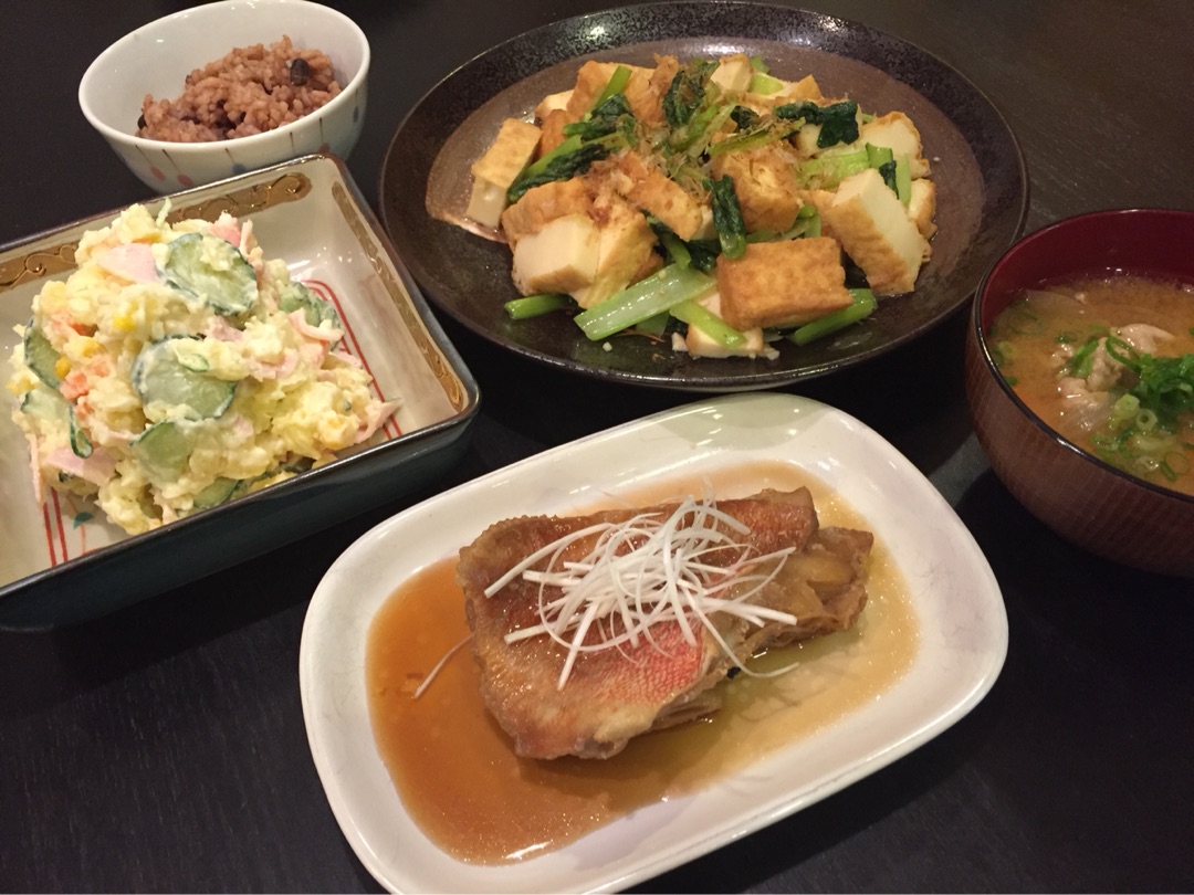 赤魚の煮付け。赤魚は淡白なので、ちょっと甘めで濃いめの煮汁がよく合います!