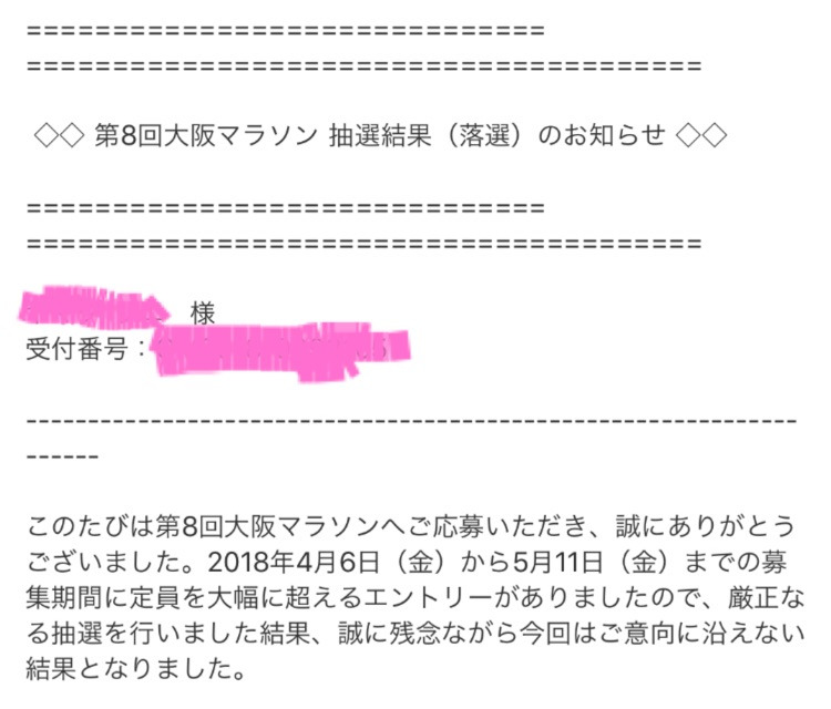 ちなみに、神戸の保険としてエントリーしていた大阪マラソンですが・・・