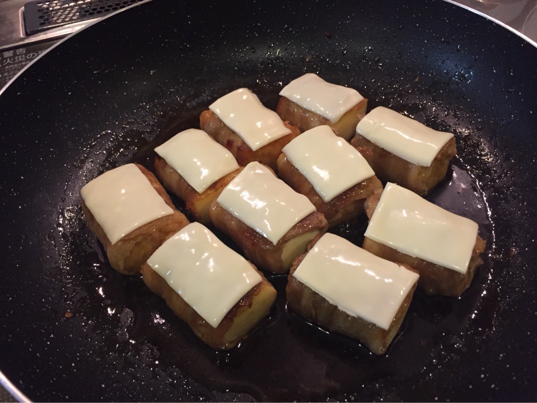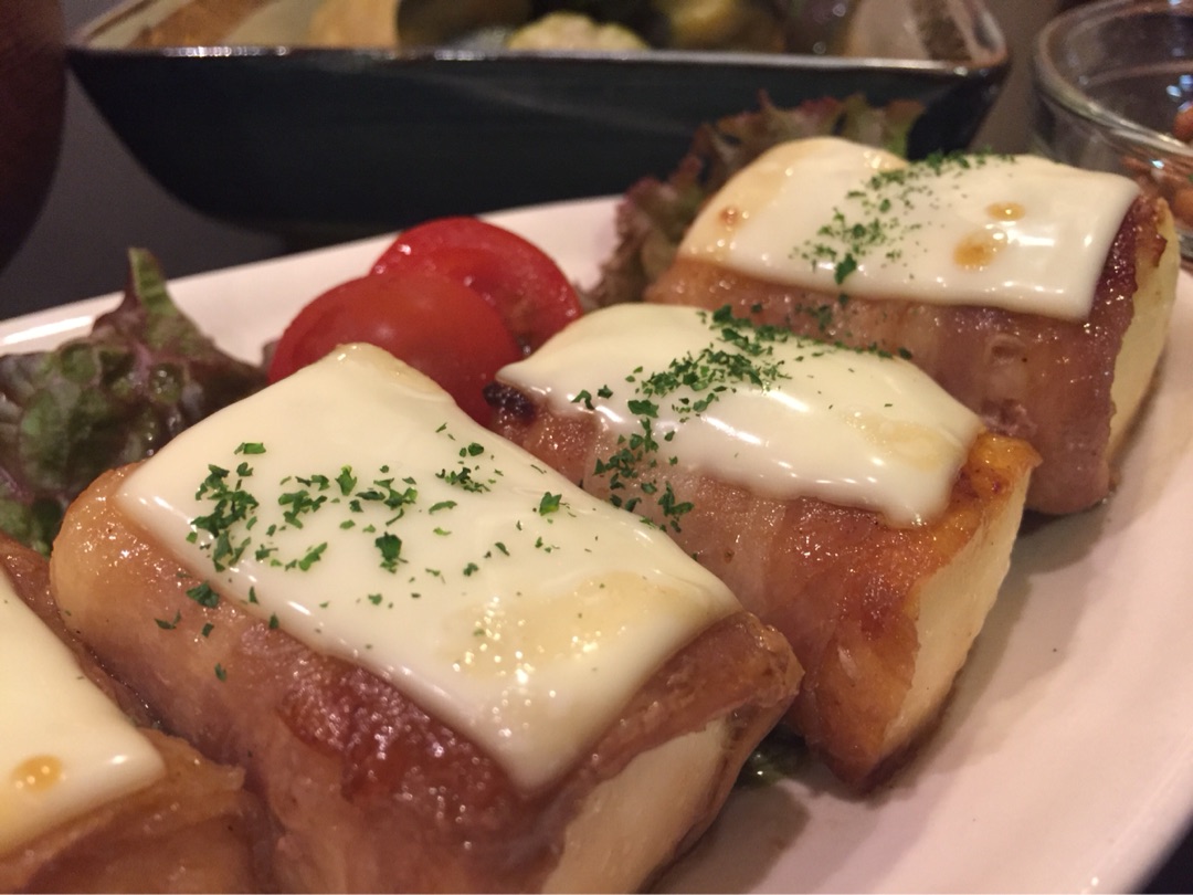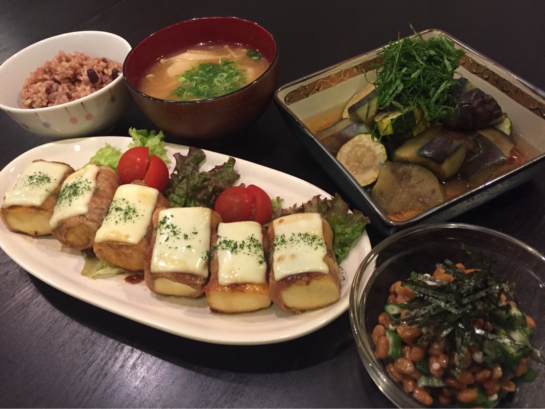 厚揚げの豚バラロール。昨日は上にチーズも乗せました♡