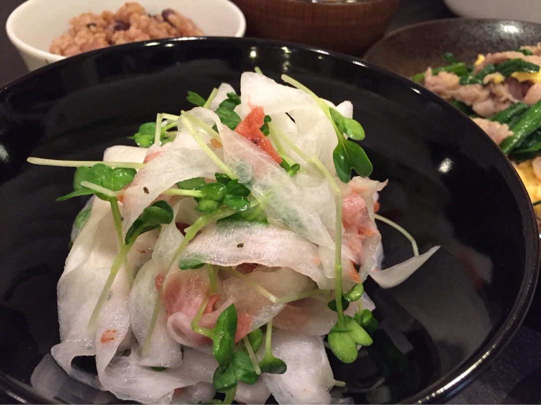 いつもはツナをまぜることが多いですが、今回はたたき梅をまぜました!