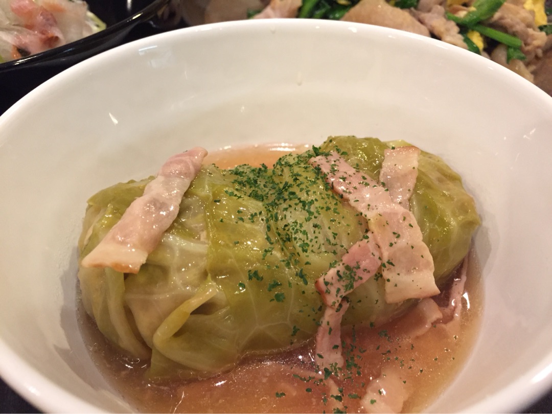 和風ロールキャベツ。和風なので、中身のタネはお豆腐入りにしました。