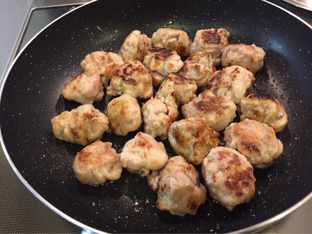 ミンチでつくる肉団子の豚こまバージョンですが、こっちのほうが肉肉しい感じで食べ応えがあります!(*゚∀゚)=3