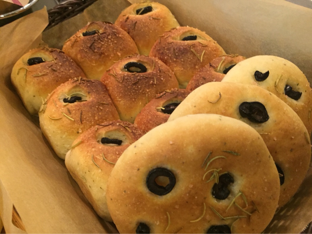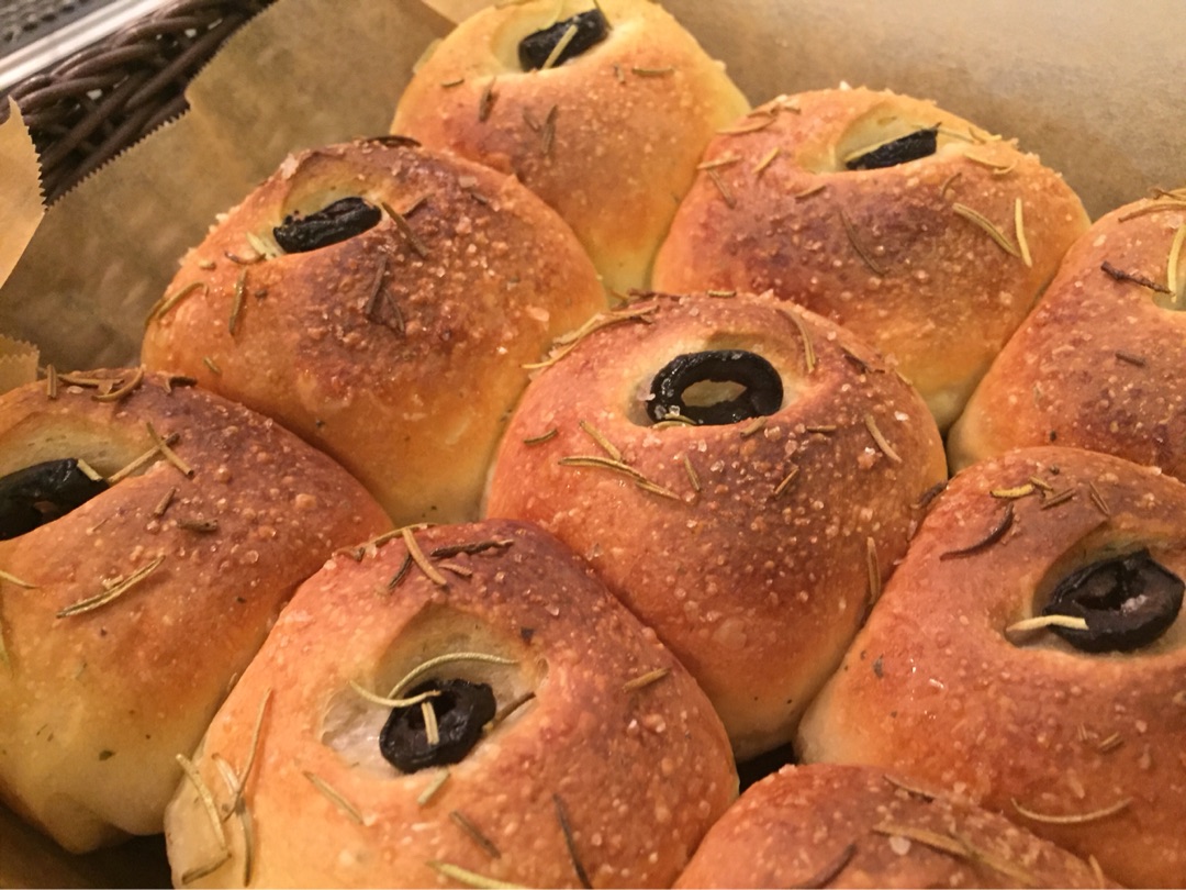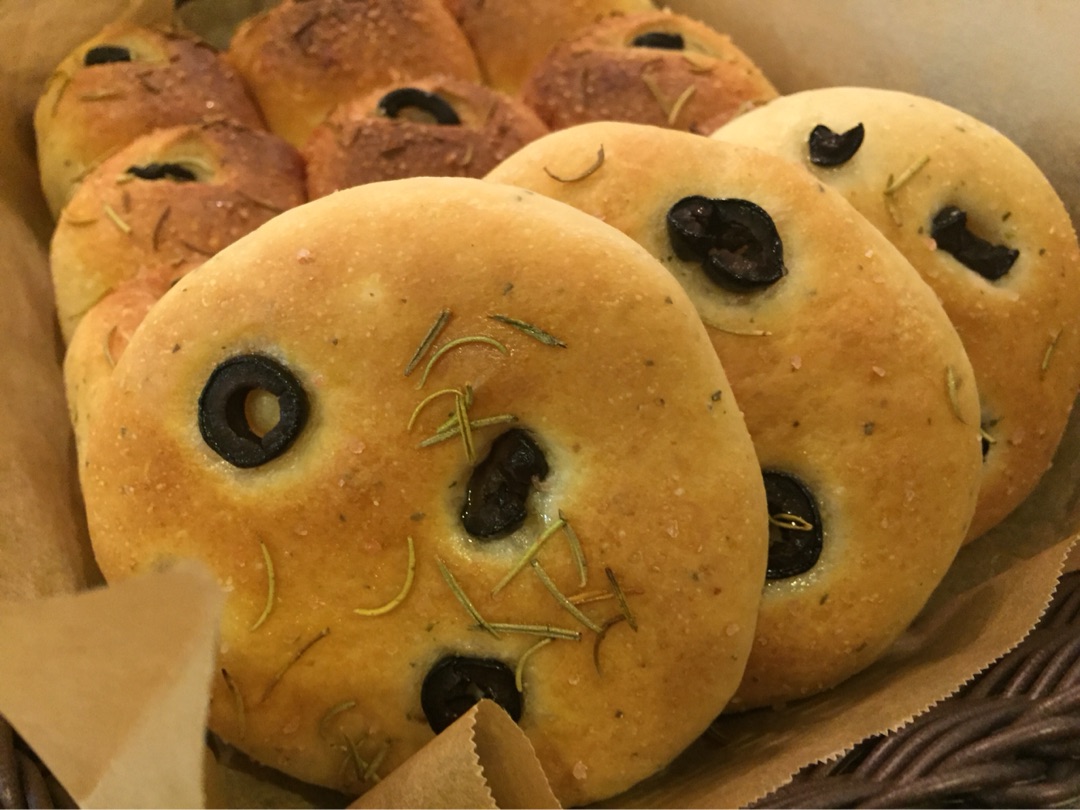 上にオリーブとローズマリーを乗せればみんなとりあえずフォカッチャです!∵ゞ(≧ε≦● )プッ
