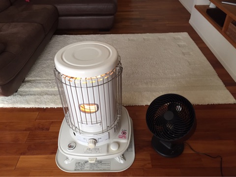 全~部暖かい空気が天井に行っちゃってもったいないので、ストーブのそばにサーキュレーターを置いて部屋の空気を循環させてます!^^