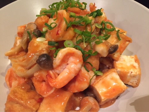 厚揚げでカサマシしたエビチリ風の炒めものとでも申しましょうか・・・(///∇//)