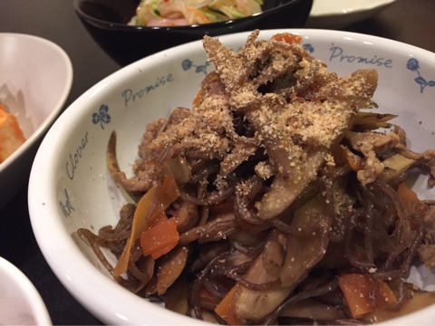 ごぼうと豚肉の炒め煮。きんぴらにする時間がないときにつくるヤツです(笑)