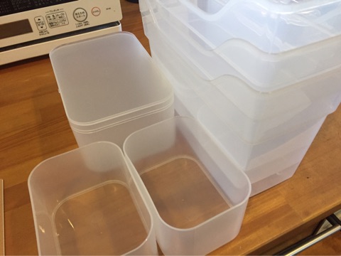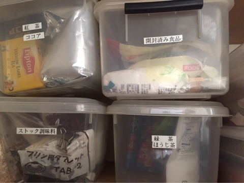 ストック食品類はダイソーのシューズボックスにこんな感じで小分けにしています^^