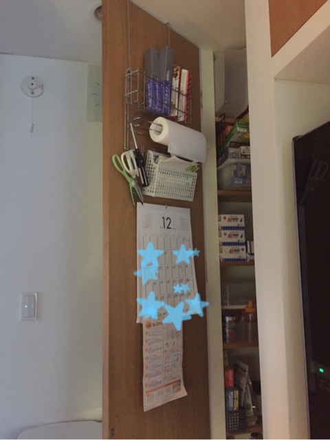 生活感が出るのでリビングやキッチンにはカレンダーはかけず、このように扉の裏に隠しています(^^;