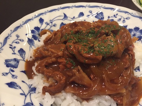 ハッシュドビーフ。ここは節約晩ごはんの我が家もちゃんとビーフを使ってますよー!(笑)