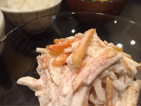このときもマヨネーズであえていましたが、柿の甘さとマヨネーズの酸味って合うんですよ~(*´∀`)