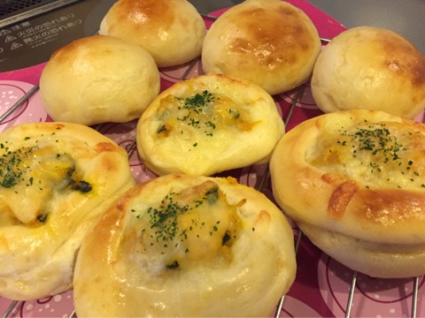 今日は丸パン、かぼちゃサラダパン、角食パンを焼きました!^^