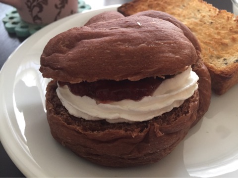 ココア味の生地のパンにベリー系のジャムって合いますよね~(*´∀`)