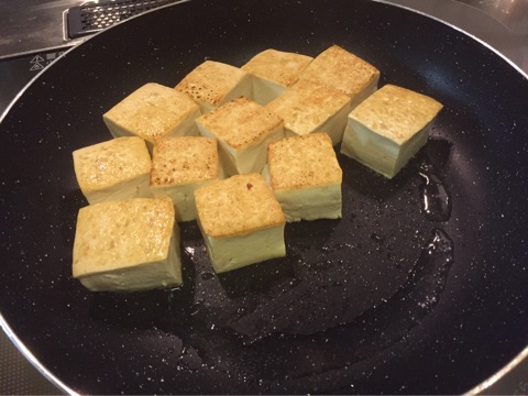 水切りした木綿豆腐を適当な大きさにカットして、油をひいたフライパンで強火で焼くだけ!