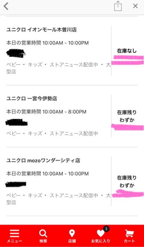 これだと、家にいながらにして今から行きたい店舗の在庫が確認できるのですごく便利です^^
