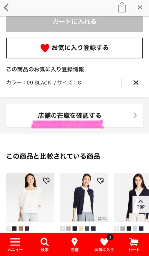 要するにどんな方法でもいいので、商品の画像を出して下のほうに送っていき、『店舗の在庫を確認する』をクリックすれば在庫確認はできます!(笑)