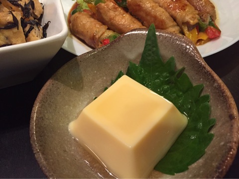 予定では大根サラダでしたが、買い物疲れで大根の千切りをする気力がなかったので、パッカンするだけでいい卵豆腐に変更しました(^^;