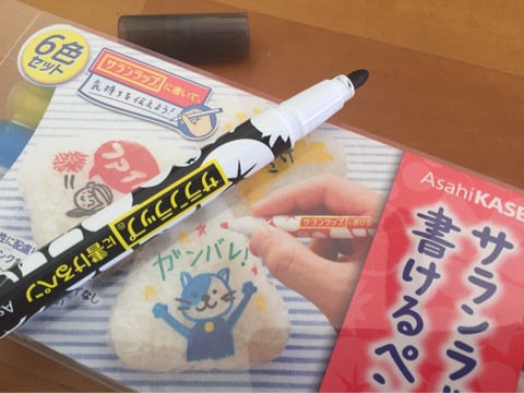 と、今からドキドキしているママも多いかと思いますが、キャラ弁をつくらなくても、このサランラップに書けるペンでもお弁当が格段にかわいくなりますよ~!