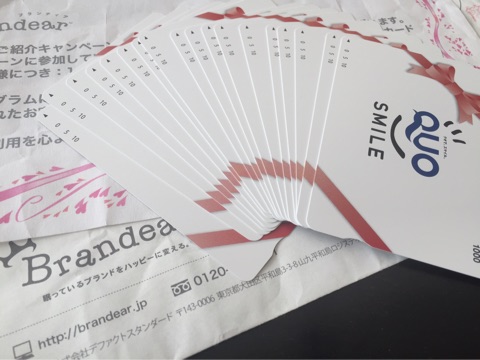 というのも、前日の土曜日にブランディアさんからクオカードが届いたんです~こんなにも~!(≧▽≦)