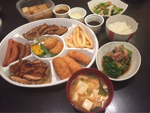メインは胸焼けしそうな揚げ物&焼き物のお惣菜セットです!(笑)