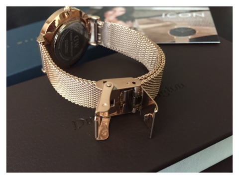 色は、この写真だと見にくいですが、ピンクっぽいゴールドなので、こんなにベルト全体が金でも肌なじみもよくて、派手さはあまり感じません。