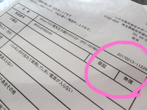 ウチの電気圧力鍋のシロちゃんを修理に出したところ、