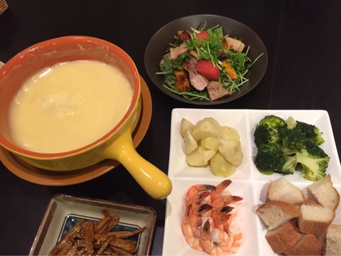 ④チーズフォンデュ 次女のリクエストのチーズフォンデュ。でも長女がこってりチーズがニガテなのでクリスマスのメニューに入れるのもいつも猛反対されますが、今回は次女優先だったのでメニューに採用しました(笑)