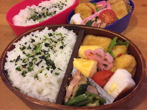 前日、私が夜いなかったので、晩ごはんは作り置きのおでんにしたため、お弁当にスライドできるおかずはナシ!(笑)