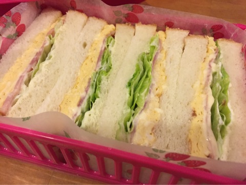 月曜日はダンナさん弁当もないので、次女だけならあるものでサンドイッチ弁当でOK♪( ´艸`)