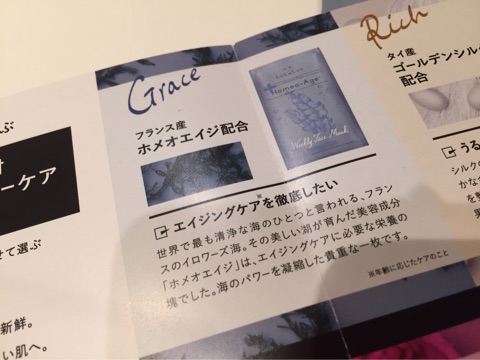 自然の美容成分を配合したフェイスマスクは10種類あるそうで、今回は届いたのはそのうちの『ホメオエイジ』が配合されたこちらの商品↓↓