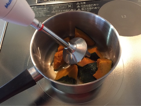 ミキサーでもできますが、その後加熱したりすることを考えると、ブレンダーは鍋にそのまま突っ込めるので断然使い勝手がいいですよね~♪