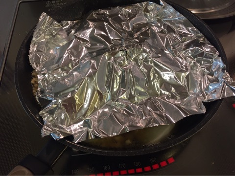 沸騰したらアクをとって、落としぶたはアルミ箔でOK^^