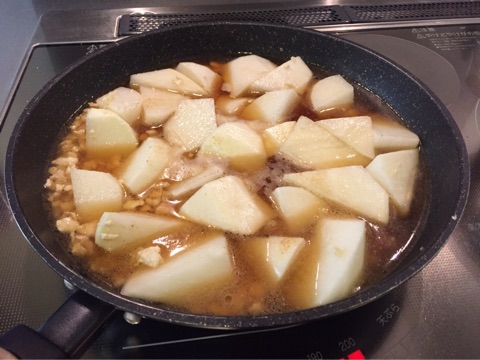 フライパンでの煮物は鍋より具材が重ならないので早く煮えて時短です(^^)
