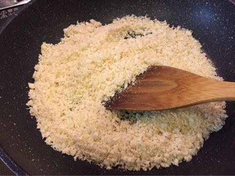 まず、おからはフライパンで空炒りします。