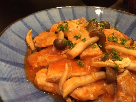 ポークチャップ、普通はフライパンで焼いてつくると思いますが、安売りのちょっと固そうなお肉だったので圧力鍋でトロトロにしました!!