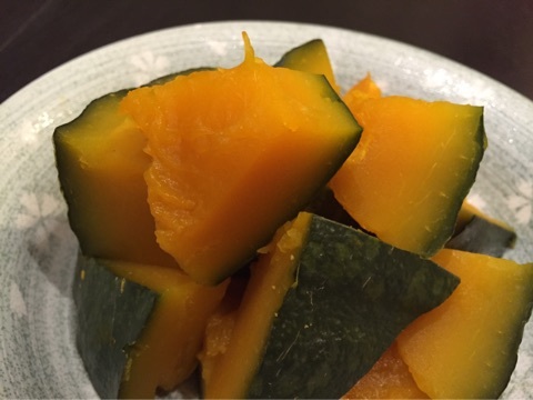 こちらのかぼちゃ、先日の旅行中に食べたお蕎麦屋さんで出たかぼちゃの煮物がおいしかったとダンナさんが絶賛してまして・・・・