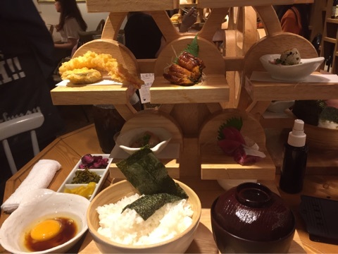 あまりに器が大きすぎて、かなりイス引いて撮ったんだけど、やっぱり上段が見切れてしまいましたヽ(;´ω`)ノ