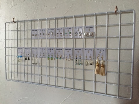 よく100均なんかに売っているネットを使って、壁掛けタイプのピアス収納をつくってみました~o(^▽^)o