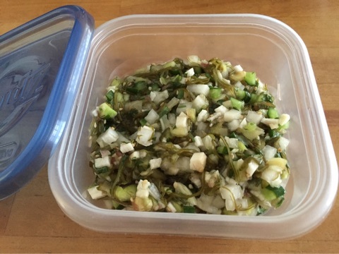 そこにめかぶのパックと白だし、白ごまを投入!そしてまぜまぜー!(笑)