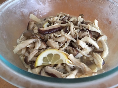 きのこ類がたくさん野菜室にあったので保存がきくマリネにしてみました~♪^^しめじ、エリンギ、しいたけ、エノキの4種類です!
