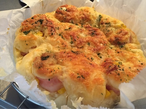 ママもよく知ってる人なので気を使うとかないんだけど、朝、うちの娘だけ早くに出かけると、朝御飯とかいろいろご迷惑かと思い、お持たせにパンを焼きました。