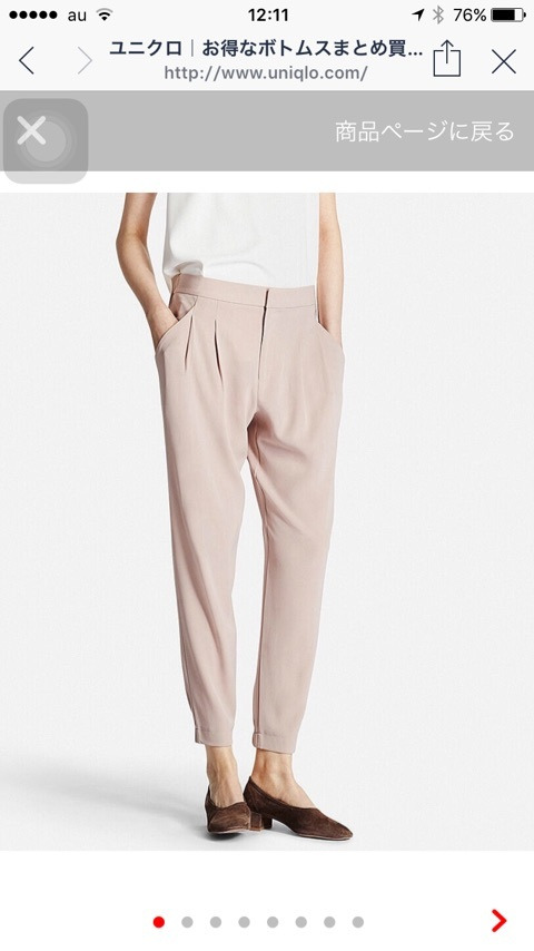 このようにモデルのおねーさんはステキに着こなしていますが、こういったタイプのパンツは、40も過ぎると『家着』になりがちなので要注意!(笑)